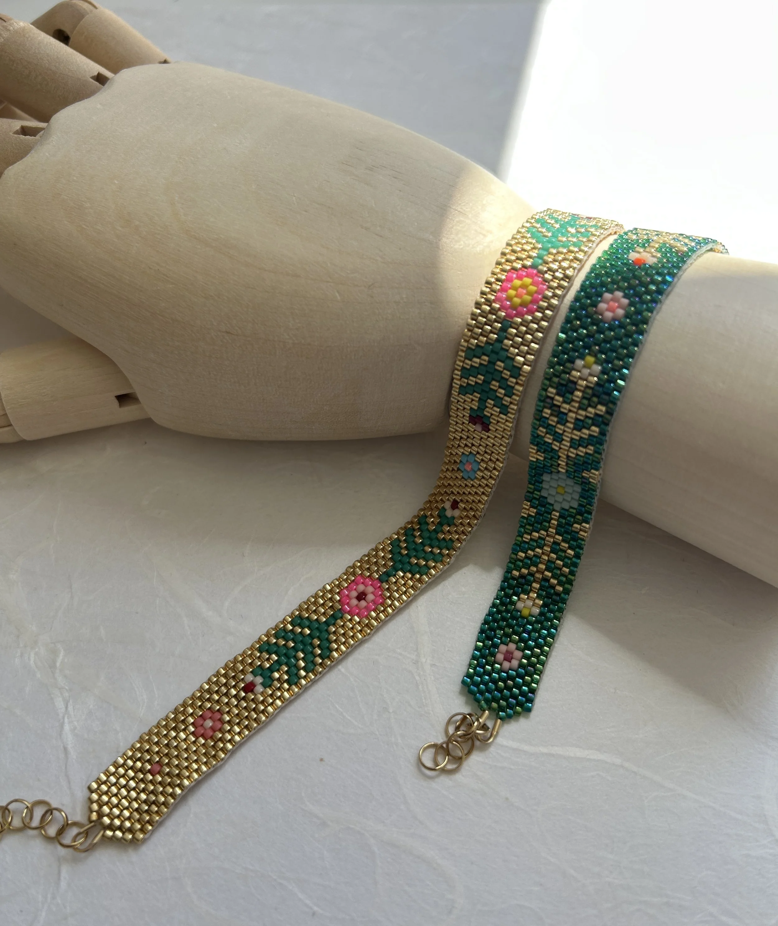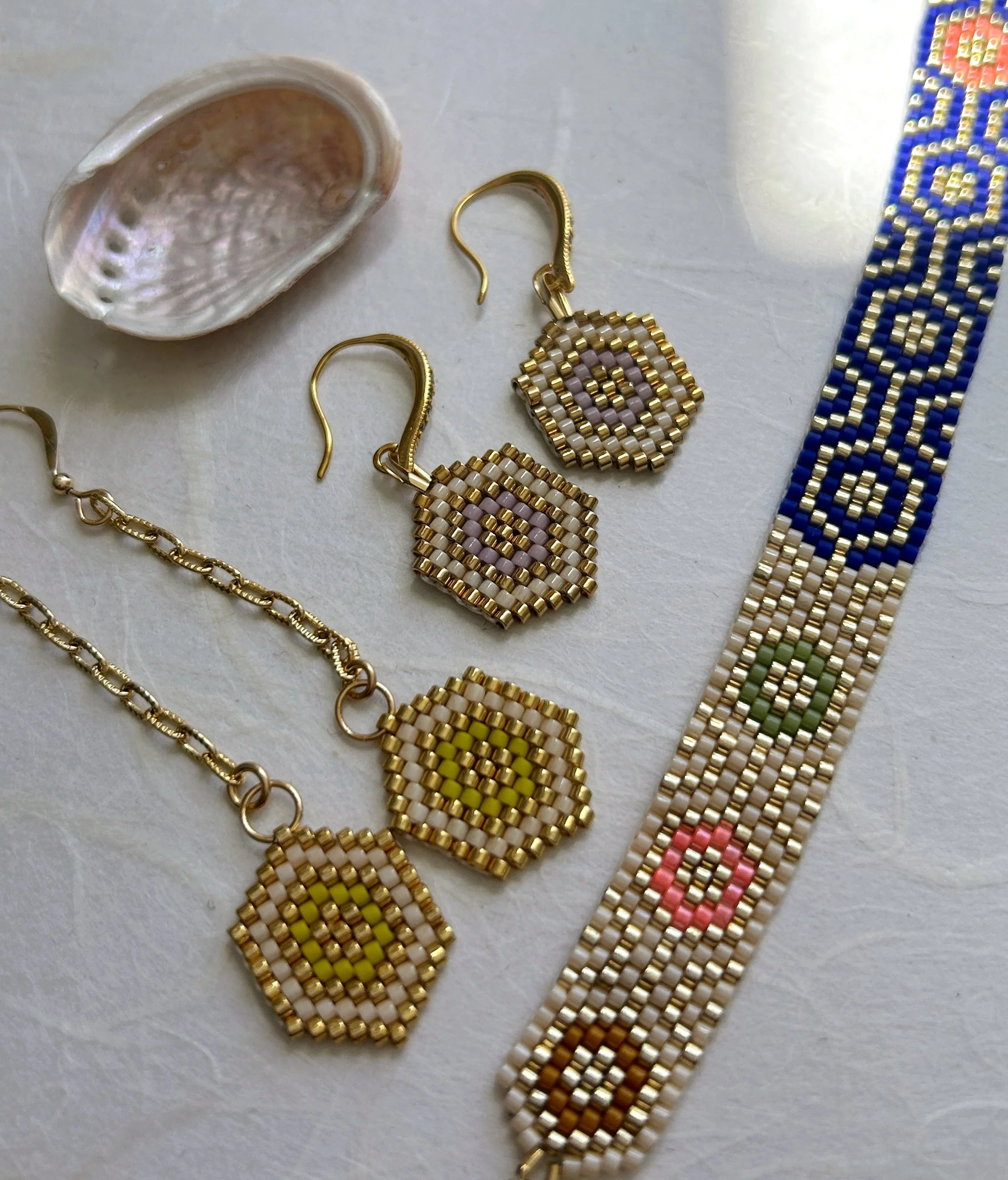 Slow-made, handwoven beadwork jewellery.