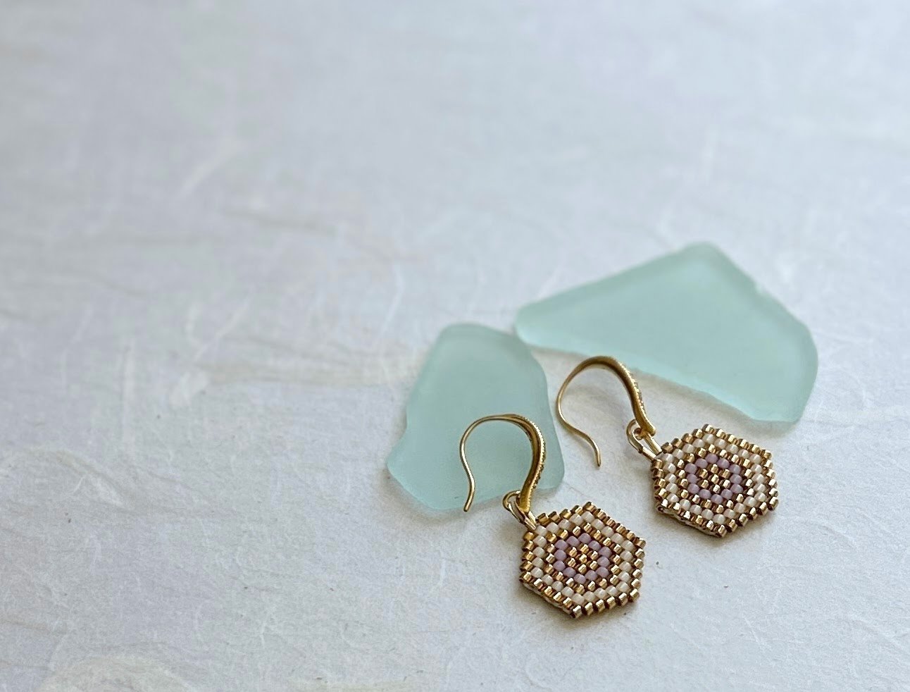 Inspired by the traditional Japanese kikko motif â a hexagonal pattern symbolising longevity and strength â this design reinterprets classical textile geometry through contemporary beadwork.