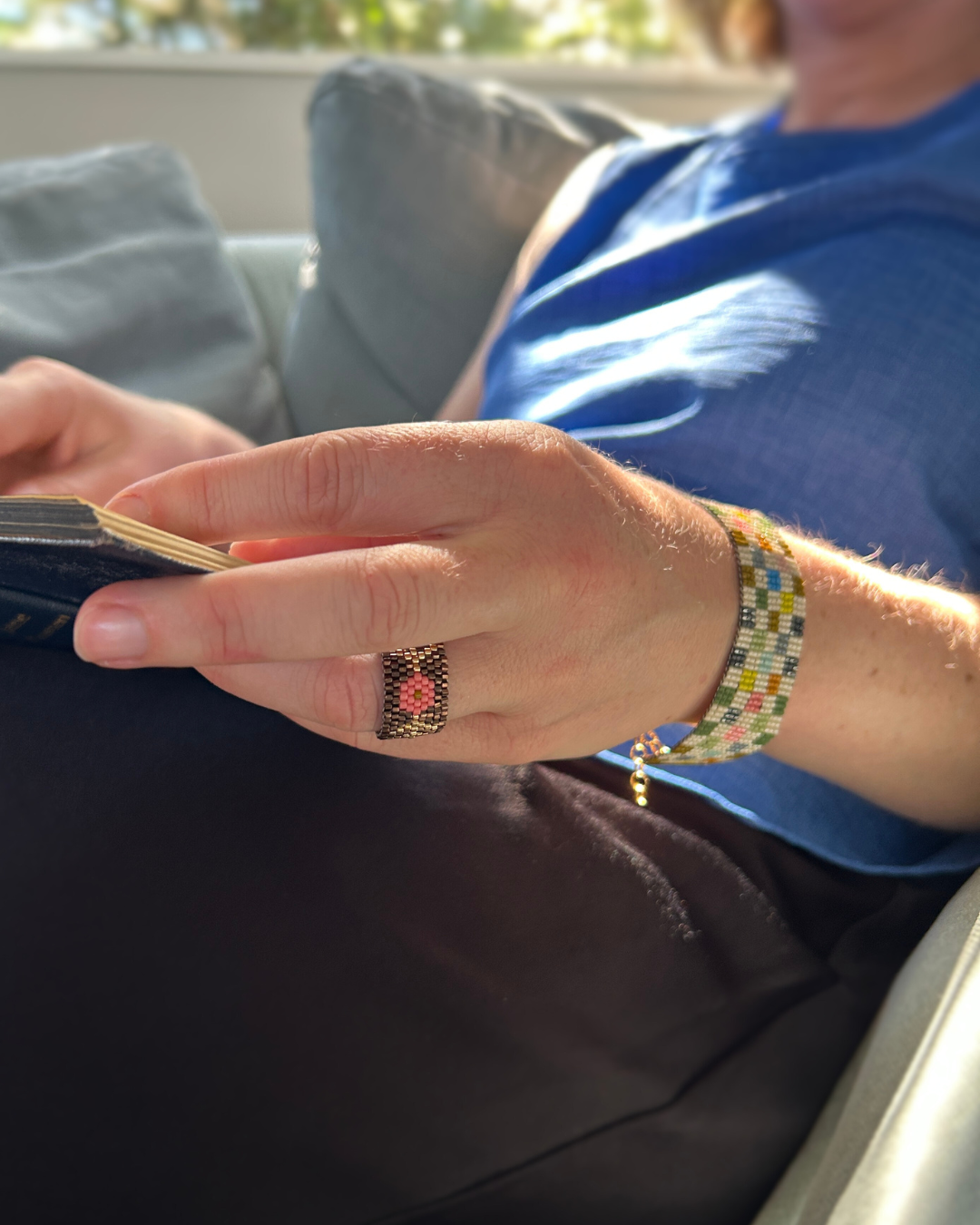 My mother was a bead artist. After she died in 2022, I inherited her bead looms and extensive collection of Miyuki Delica beads. In the months that followed, I began teaching myself bead weaving and soon fell in love with a new craft. Creating beautiful pieces with my mother’s loom was a meaningful healing process that helped me feel connected to her and rediscover joy during a difficult time in my life.