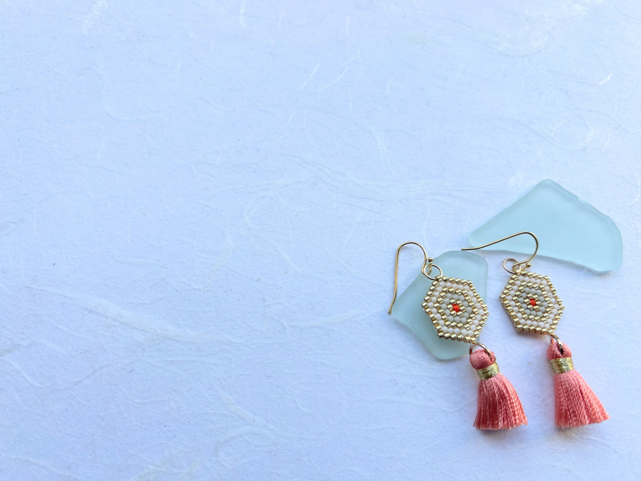 Like all handmade beadwork, pieces may develop a gentle patina over time. Metallic and lustre finishes can soften and colours may subtly shift with wear. This is part of their character, but if you'd like to preserve the original finish for as long as possible, removing your jewellery before applying perfume and lotions, and storing in a cool, dry place away from direct sunlight is recommended.